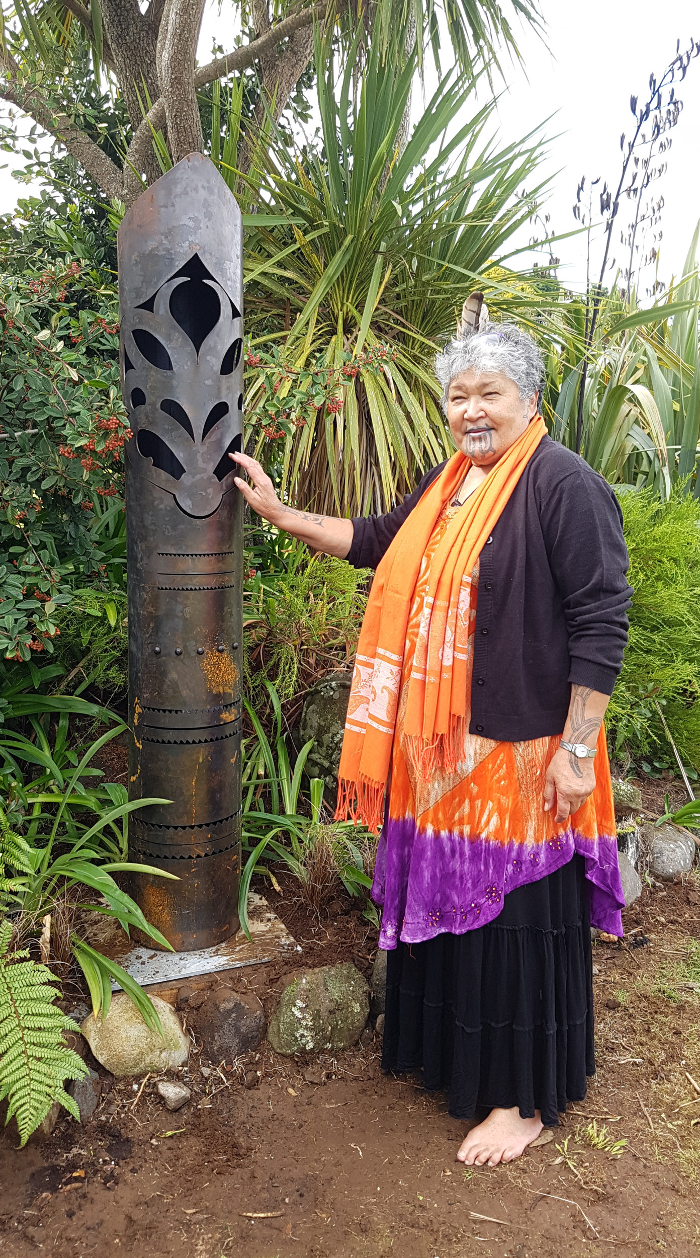 This work was a collaboration with Kaitiaki (Guardian) Maata Wharehoka (photographed above with the pou), B J Hetet and John Christini. When one of five buttons on the pou was pressed, kōrero (talk) by Maata spoke of the heritage of the Whare Nui (Meeting House) and her time as Kaitiaki. Using solar power was partly a response to Te Huirangi Waikerepuru talking of the energy of Rā, the sun, and also a response to Anthropocene issues. The Te Niho pou was a culmination of working alongside Māori, starting in 2006. I am extremely grateful for the lessons learnt and wisdom given.