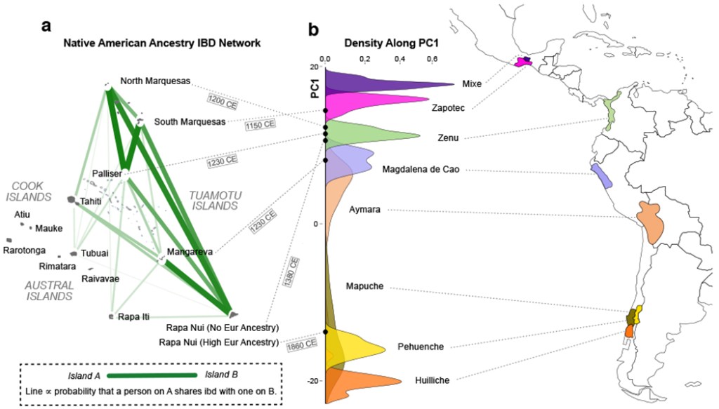 Native American gene flow into Polynesia predating Easter Island settlement by Ionnadis et al (2020). While there is discusion in the West regarding whether moana peoples went east or South Americans went west, there is ample evidence of voyaging in Polynesia to assert Moana peoples went east. There are Western academics who cite the voyage of Thor Hyerdahl however as Crowe 2018 put it, Hyerdahl drifted to the Tuamotus and was no closer to Rapa Nui than when he set out. The currents near to South America are particularly strong, and require significant skill to navigate, something that has been with Moana peoples since 950CE, which is evidenced by radiocarbon dating.