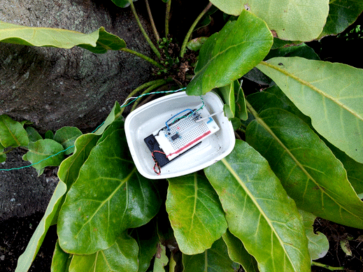 Wai was presented at ISEA in Albuquerque. At the prompting of Te Huirangi, we endeavoured to contact some of the local Indigenous peope and through Harete Tito, were able to. The two images above come from the Wai project. At top is the kind of electronics Andrew Hornblow likes to make – using a recycled margarine container to waterproof the electronics, and making circuits with reusable circuit boards. Andrew had also invented a tree voltage measurer, so we used this as live environmental data input to the project (along with temperature and light).