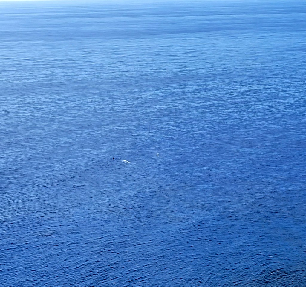 Ngaru Whenua wave forms off Hitiaurevareva Pitcairn. Note the way the wave forms stay distinct even when overlapping. The small white dots are a Humpack whale and calf.